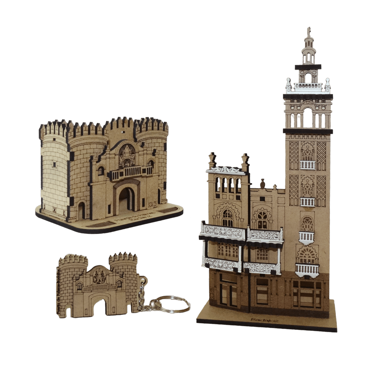 Giralda o Giraldilla de Badajoz. Regalo artesanal de madera. Portalápices. Pisapapeles de sobremesa.